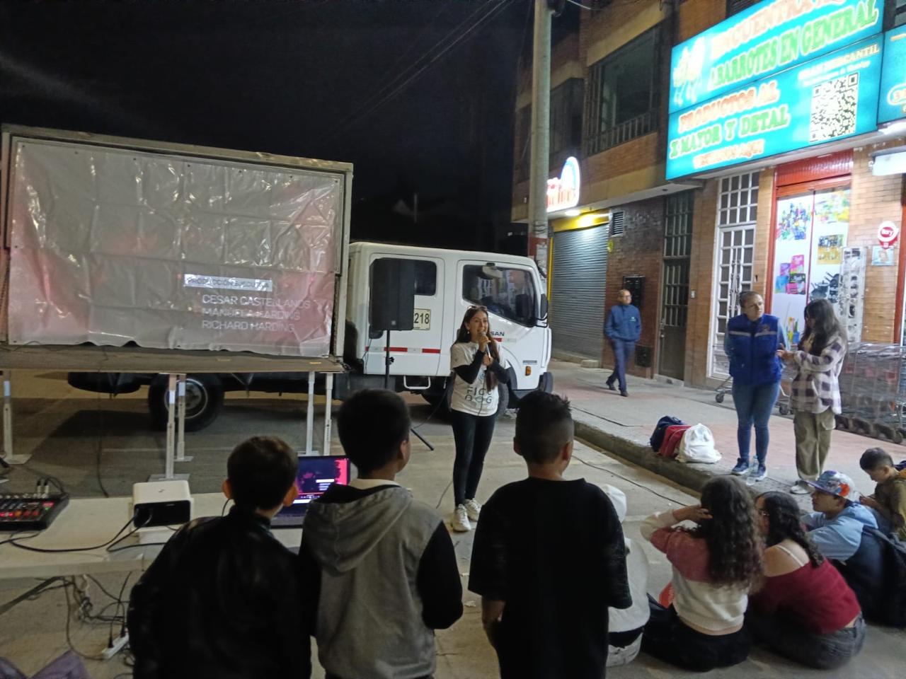 Como parte de las propuestas creativas, se organizó una jornada de “Cine al parque” que contó con 58 asistentes. Esta actividad permitió conectar con familias de la zona en un ambiente distendido y cercano. Durante el resto del fin de semana, las acciones se extendieron a las calles y a la iglesia Cruzada Cristiana Puertas de Salvación en Mosquera y Funza.